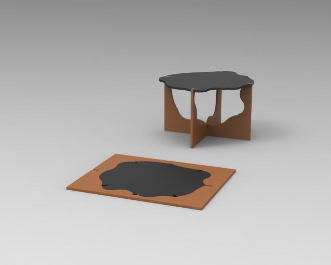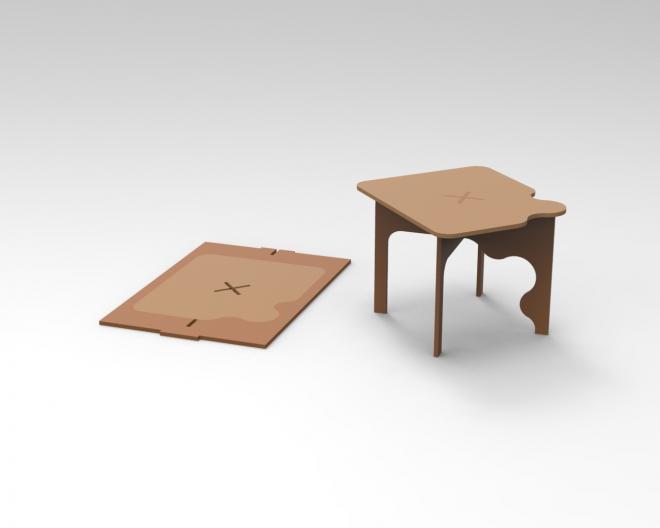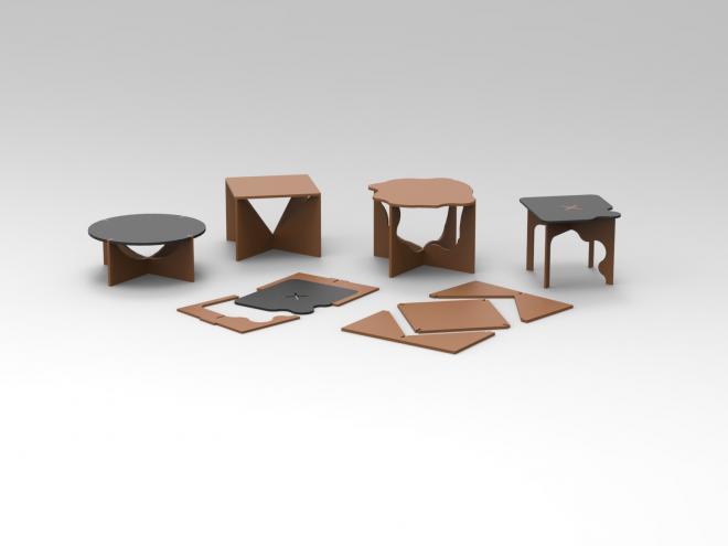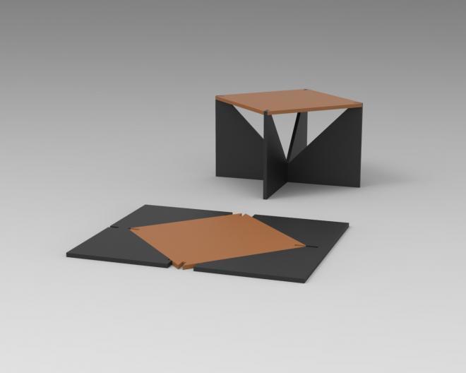 Product DesignYou have a board of some material or other, and would like to turn it into a little table as simply as possible, with as little waste as possible, and no screwing? Yes you can! And it will be one of a kind, too.
