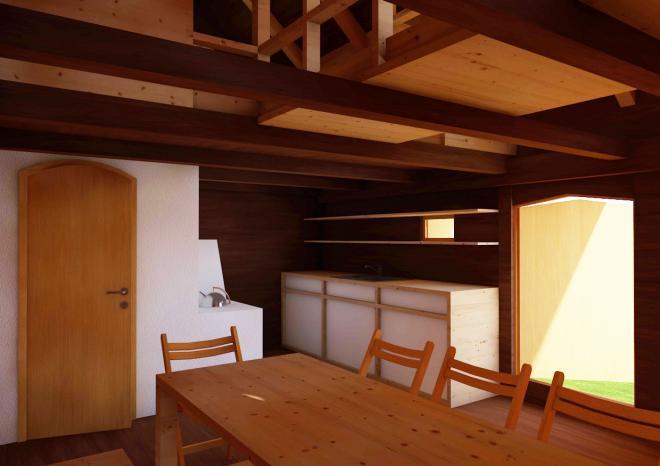 However... the winter bites, the mice play, and the hills are as hilly as hell. So instead of fetching the water from miles away, instead of packing up as soon as the sun sets, instead of climbing the slopes to go to the loo, instead of keeping the stuff in the trunk of the car, let's find the right place for a toilet, a storage and a kitchen. Just that, nothing more.