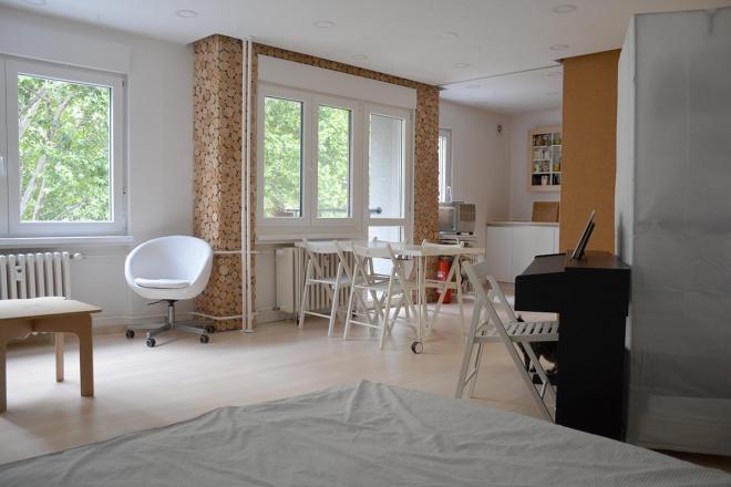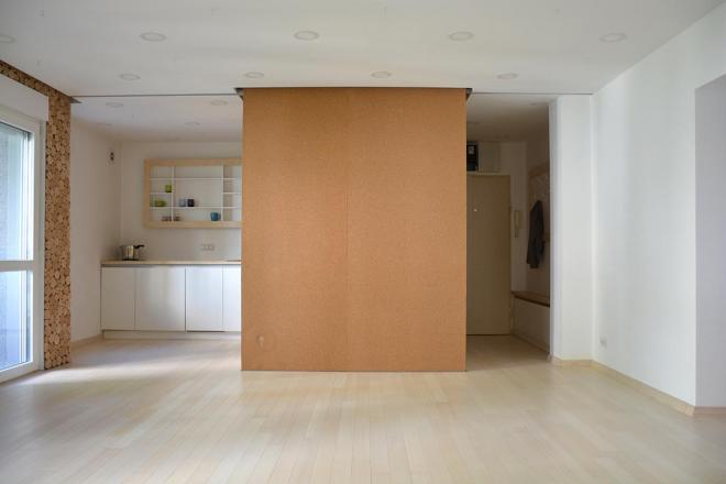 Sve su te preobrazbe moguće zato što nam je namještaj lagan i/ili na kotačima i/ili lako sastavljiv/rastavljiv. Povrh toga, raspored prostorija u stanu i njihov odnos spram vanjskoga svijeta (pogled, osunčanje u različitim dobima dana) podržava takvu atmosferu.